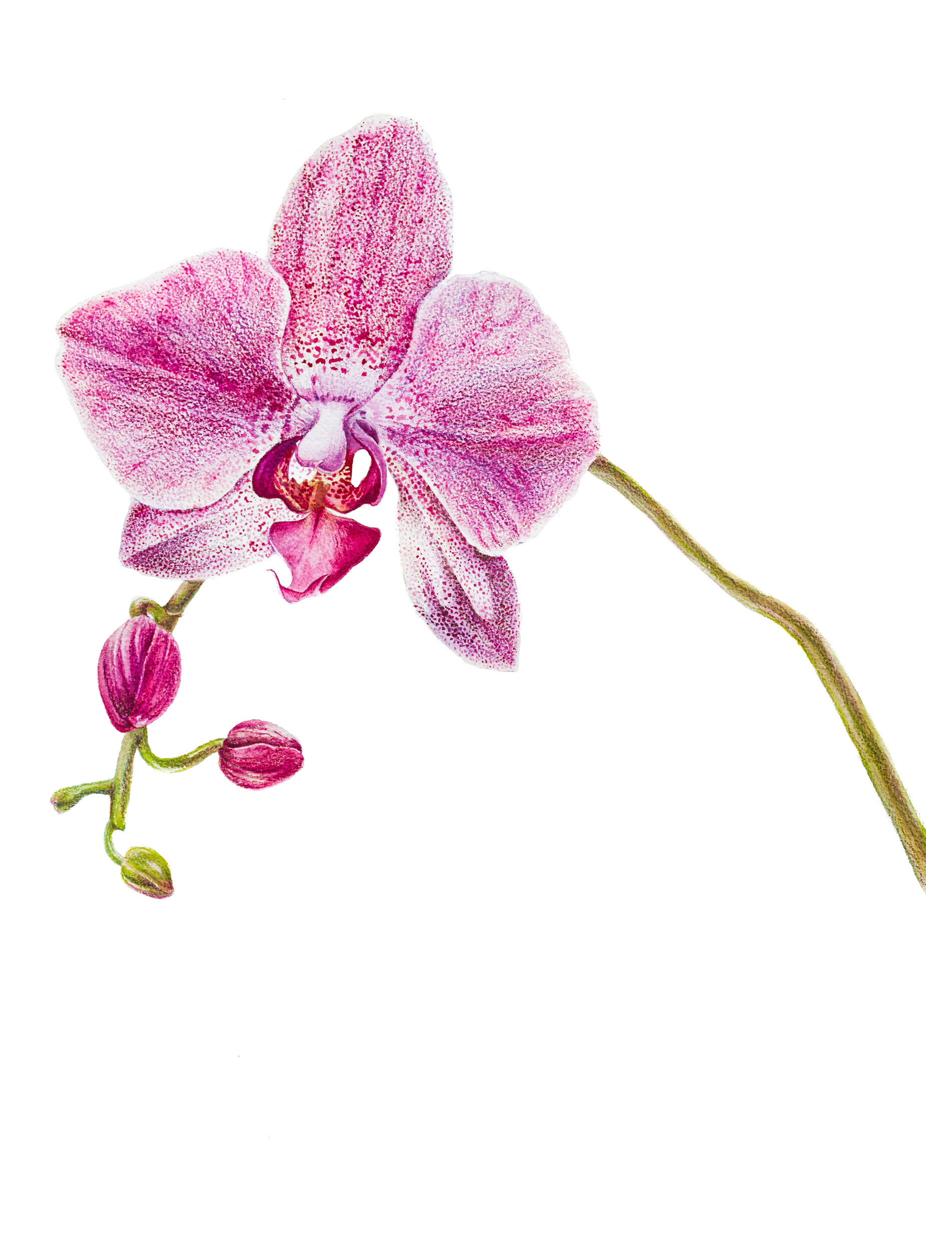 Lonely Orchid. Watercolor and color pencils on paper, 32x 42 cm, 2025