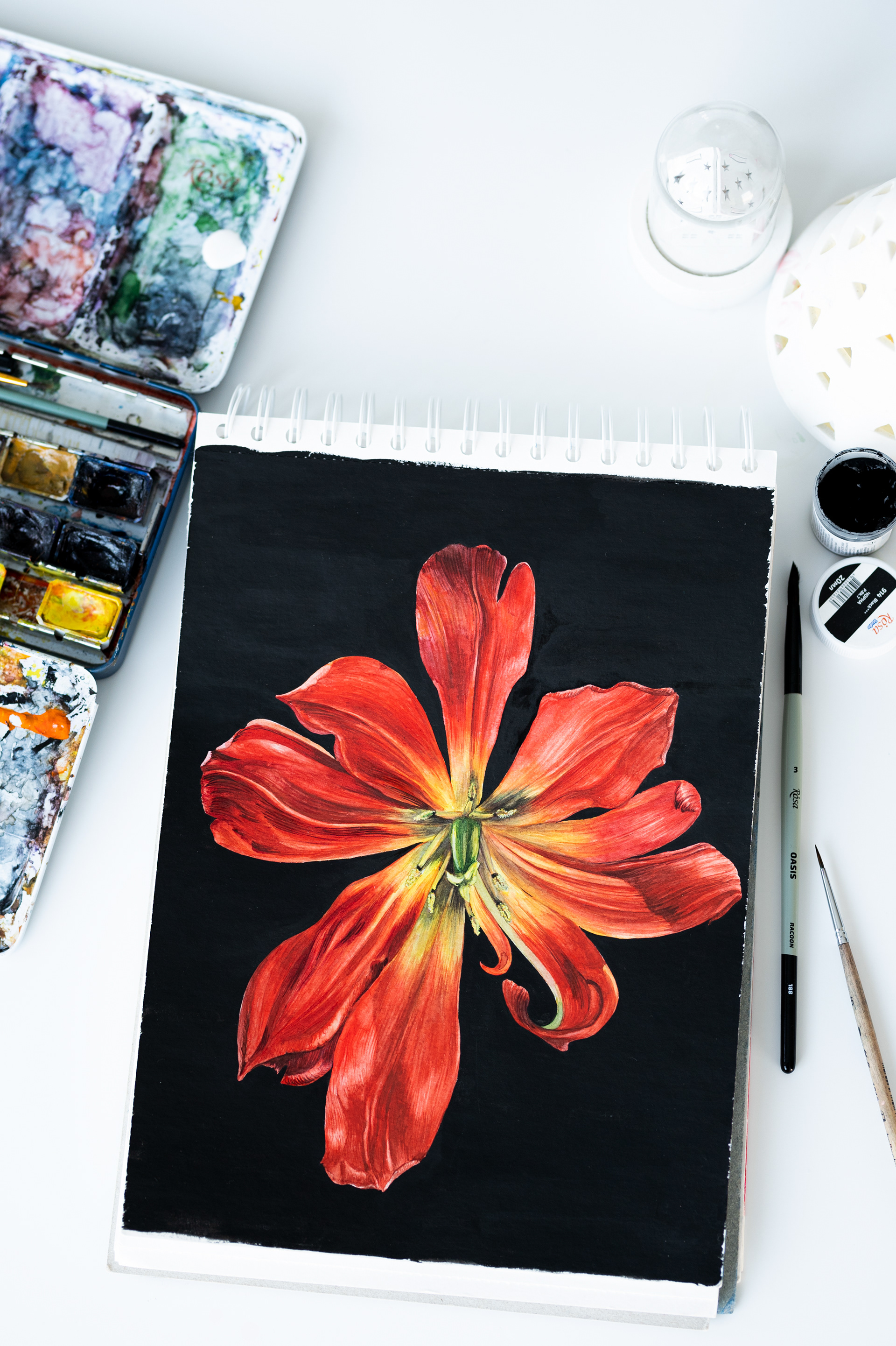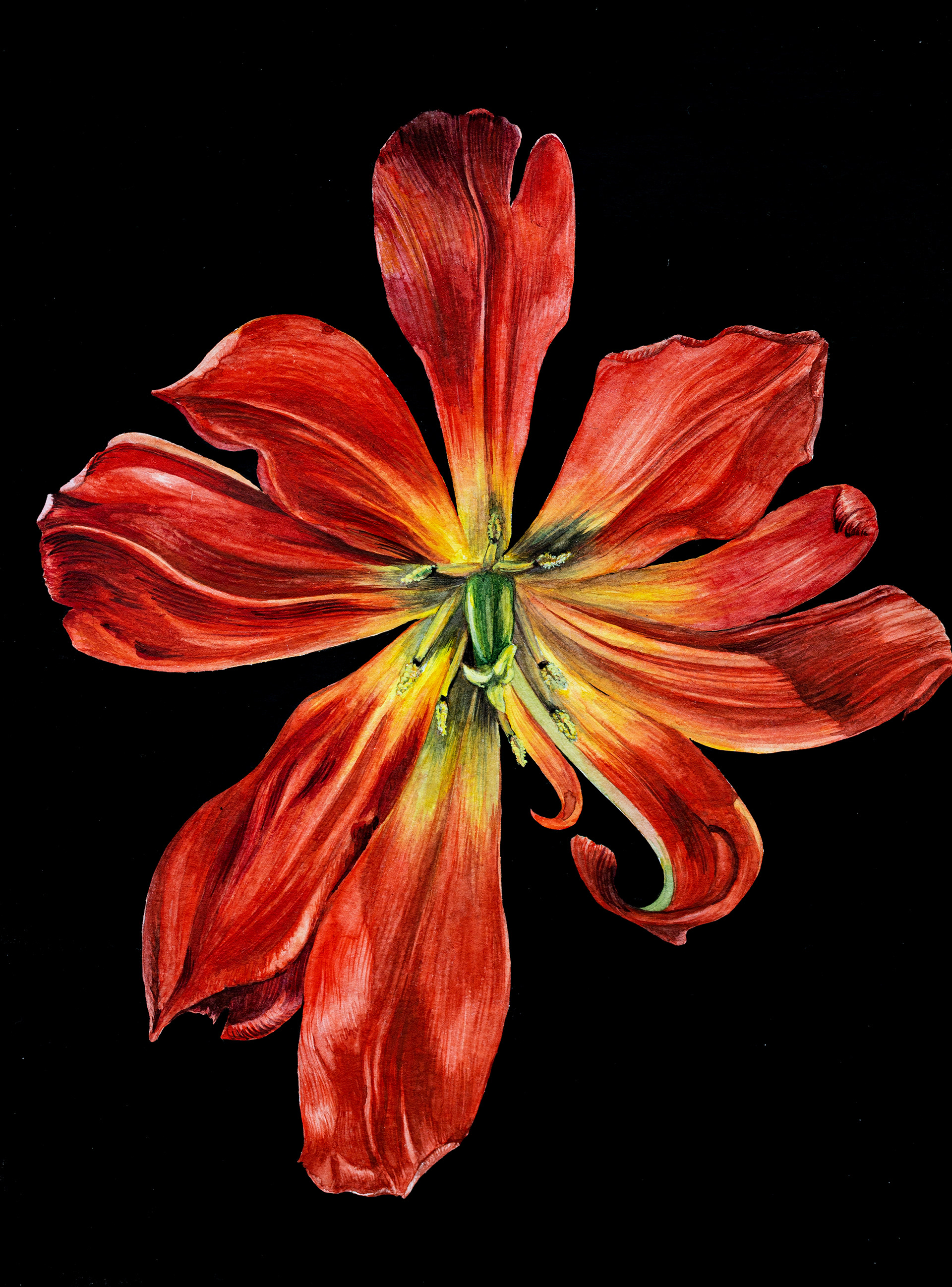 Tulip. Watercolour and black gouache on paper, 21x 29 cm, 2024